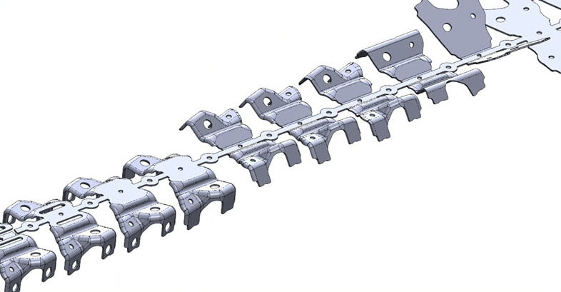 | PCB: Progresívny rozvin – vytvára medzi kroky pre zložité tvarové diely | ● | ||